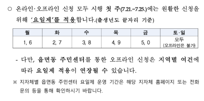 또한 요일제가 적용되는 첫 주에는 자녀의 출생연도 끝자리를 기준으로 신청 요일이 정해지므로, 이를 사전에 확인해야 불필요한 헛걸음을 방지할 수 있습니다. 예를 들어 2010년생 아동의 경우, 끝자리 0에 해당하는 요일에만 신청이 가능합니다.