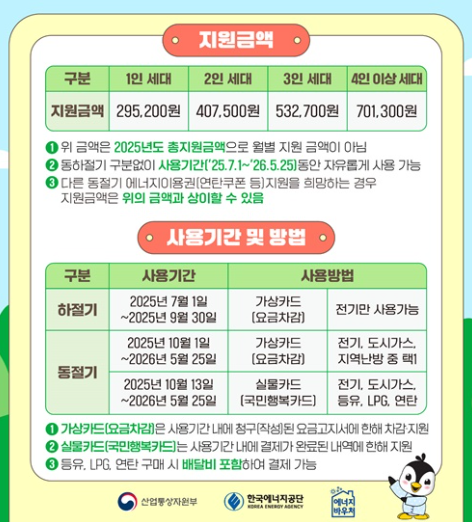 이러한 에너지바우처는 난방비, 전기요금 등 공공요금 부담을 줄여주기 위해 계절에 따라 각각 지원되어 왔으며, 실제로 많은 가구에서 유용하게 사용해오고 있습니다.