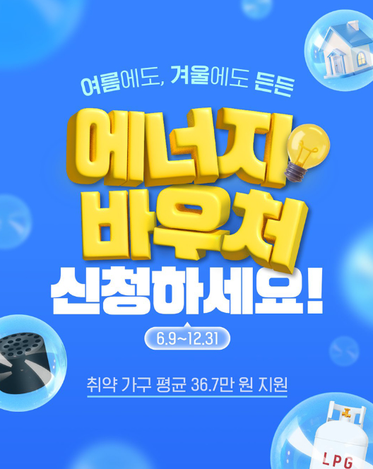 에너지바우처는 정부가 에너지 취약계층에게 난방 및 냉방을 위한 에너지 비용을 지원하는 제도입니다. 즉, 국민 모두가 시원한 여름, 따뜻한 겨울을 보낼 수 있도록 실질적인 도움을 주기 위한 목적을 가지고 운영되고 있습니다.
